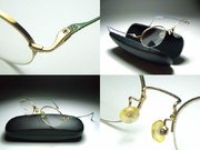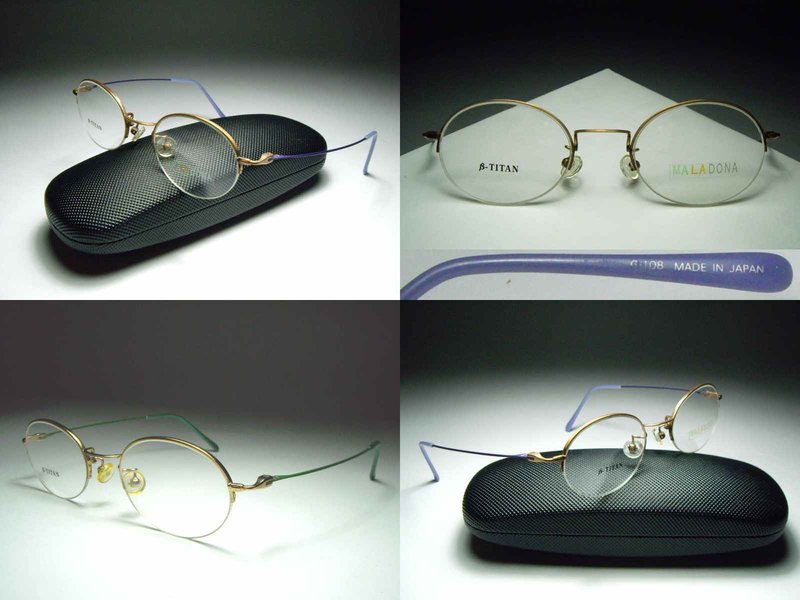 全新真品 MALADONA 光學眼鏡, 日本製鈦金屬圓半框, 金色細緻線條鏡架, 時尚迷人, 氣質非凡有特色.