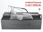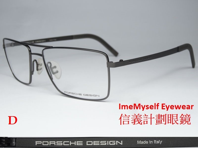 全新真品 PORSCHE DESIGN 光學眼鏡, 型號P8281 義大利製, 雙槓方框金屬框, 鏡架上有 PORSCHE DESIGN 的字樣.