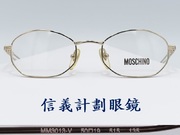全新真品 MOSCHINO 光學眼鏡 MO3013 義大利製 金屬框 圓框 多角框 小框 鏤空 彈簧鏡腳, 鏡腳兩側都有MOSCHINO 字樣, 可從側面照片可以看出它的質感. 獨特有型.