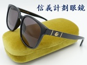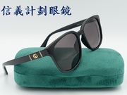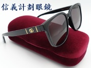 全新真品 GUCCI 古馳 太陽眼鏡, 義大利製, 膠框 膠腳 方框 大框, 鏡架兩側有 GUCCI 的金屬 LOGO 字樣, 時尚有型