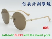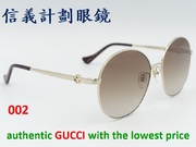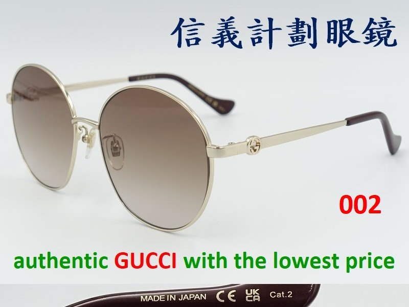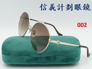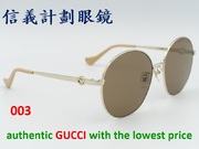 全新真品 GUCCI 古馳 太陽眼鏡, 日本製, 金屬框 圓框 大框 金屬鼻墊, 鏡架兩側有 GUCCI 的金屬 LOGO 鏤空字樣, 時尚有型
