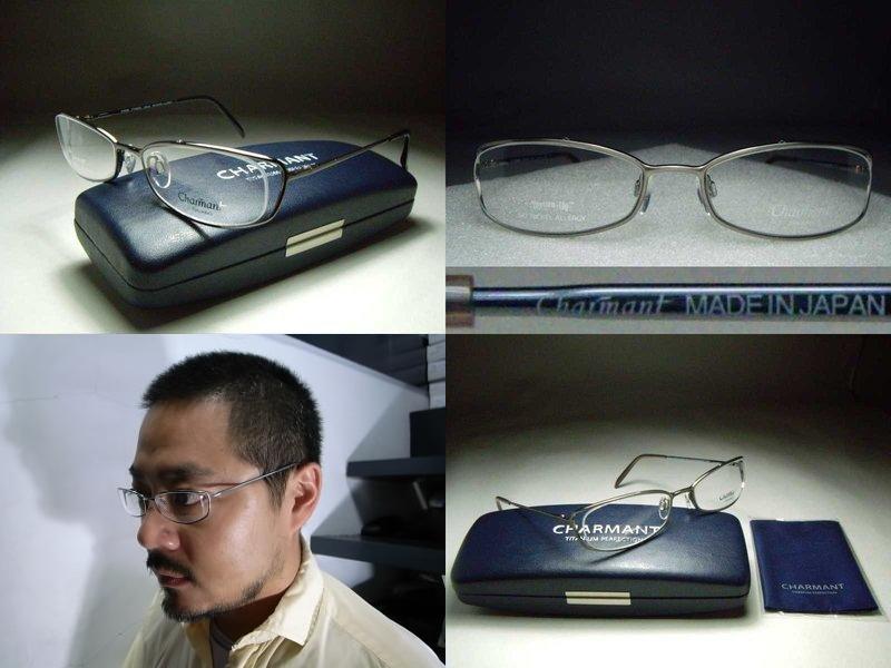 全新真品 Charmant 光學眼鏡, 日本製 純鈦金屬彈簧鏡架, 不含鎳不過敏, 鏤空立體鏡片.