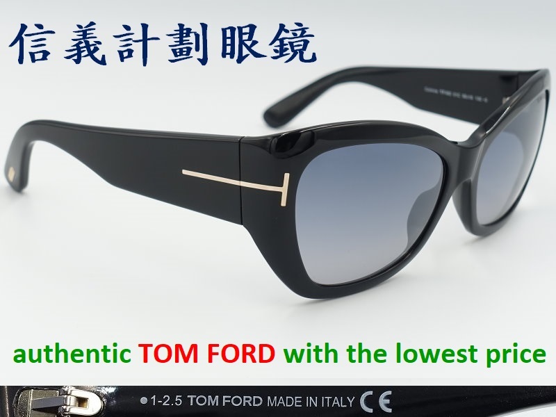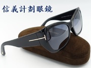 全新真品 Tom Ford 太陽眼鏡 義大利製 膠框 方框 貓眼 大框 立體, T字經典LOGO, 鏡架尾端上有 Tom Ford 的字樣, 復古有型