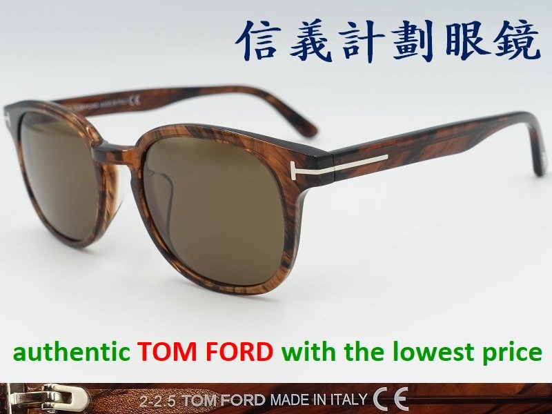 全新真品 Tom Ford 太陽眼鏡 義大利製 膠框 方框 圓框 圓框 立體, T字經典LOGO, 鏡架尾端上有 Tom Ford 的字樣, 復古有型