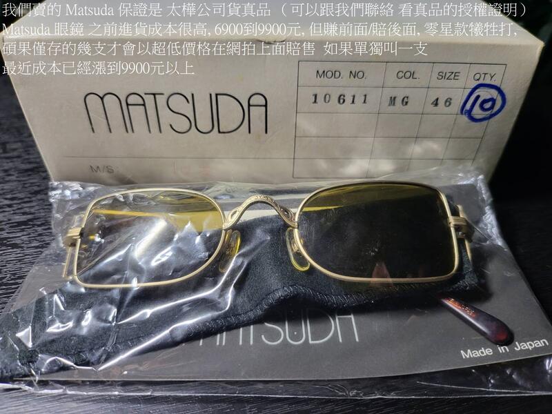 我們賣的Matsuda保證是太樺公司貨真品 (可以跟我們聯絡 看真品的授權證明)