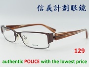 全新真品 Police 光學眼鏡, Police眼鏡專業製造廠 P.D.O 義大利製造, 金屬 方框 眉框 彈簧鏡腳, 男女皆適用.
