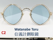 Watanabe Toru 渡邊徹 TC 037 太陽眼鏡 日本製 鈦金屬 圓框 正圓 橢圓 小框 菱形 鏤空 造型, 真空離子 IP電鍍, 復古 十字星矢鏡腳轉折處, 時尚有型