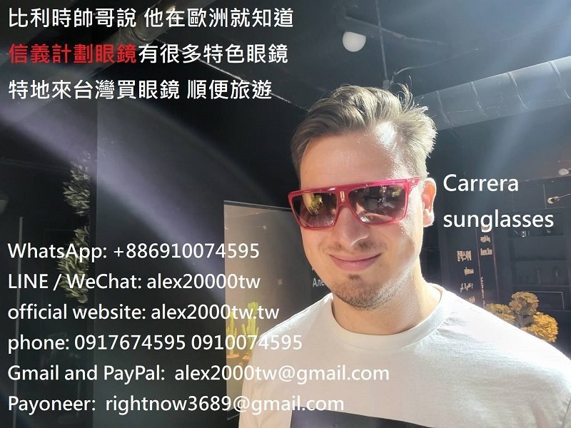請看照片 比利時帥哥 說他在國外就知道 信義計劃眼鏡有很多特色眼鏡 他找這一款Carrera 紅色太陽眼鏡 找很久 從比利時專程來台灣買Carrera眼鏡 順便旅遊