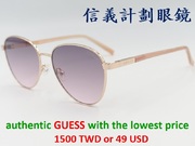 GUESS 太陽眼鏡 GU3041 圓框 金屬框 有鼻墊 , 鏡架兩側有 GUESS 的金屬 LOGO 字樣 和 水鑽, 時尚有型