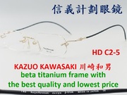 Authentic, original, and brand new Kazuo kawasaki titanium rimless optical frames eyeglasses