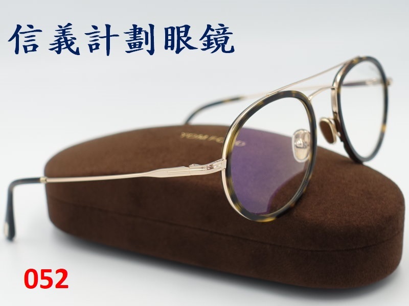 全新真品 Tom Ford 光學眼鏡 義大利製 圓框 金屬框 膠框 複合式雙材質 雙槓 飛行員 機師 pilot aviator 空服員, T字經典LOGO, 鏡架尾端上有 Tom Ford 的字樣, 復古有型