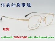 全新真品 Tom Ford 光學眼鏡 日本製 方框 純鈦 金屬框 titanium 波士頓框, T字經典LOGO, 鏡架尾端上有 Tom Ford 的字樣, 復古有型