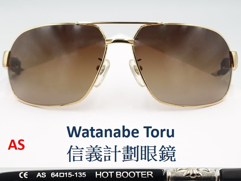 Watanabe Toru 渡邊徹 Hot Booter 太陽眼鏡 日本製 金屬框 方框 大框 飛行員 機師 雙槓 造型 輕量化板材 輕鬆駕馭 王者風範, 復古 十字星矢鏡腳轉折處, 時尚有型