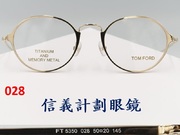 全新真品 Tom Ford 光學眼鏡 日本製 圓框 純鈦 金屬框 titanium 波士頓框, T字經典LOGO, 鏡架尾端上有 Tom Ford 的字樣, 復古有型