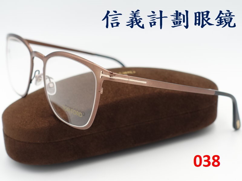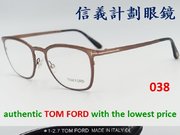 全新真品 Tom Ford 光學眼鏡 日本製 方框 金屬框 威靈頓框 金屬鼻墊, T字經典LOGO, 鏡架尾端上有 Tom Ford 的字樣, 復古有型