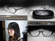 全新真品 GENNY 光學眼鏡, 藍色半透明網底膠框, 鏡架有醒目的浮雕Logo.