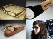 有別於一般膠框眼鏡, 框面設計時尚新穎, 皮革鏡架又具古典書香氣息, 兩者形成的反差效果, 讓這鏡框更具特色.