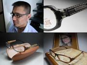 有別於一般膠框眼鏡, 框面設計時尚新穎, 皮革鏡架又具古典書香氣息, 兩者形成的反差效果, 讓這鏡框更具特色.