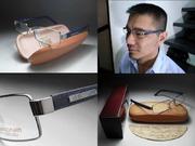 有別於一般膠框眼鏡, 框面設計時尚新穎, 皮革鏡架又具古典書香氣息, 兩者形成的反差效果, 讓這鏡框更具特色.