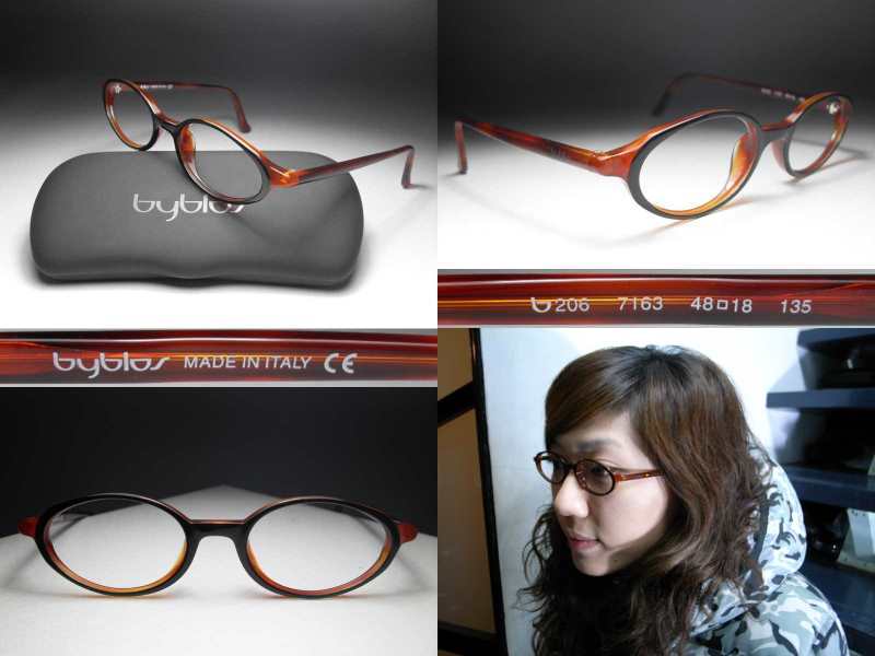 全新真品 byblos 光學眼鏡, 義大利製咖啡色圓形膠框, 兩邊鏡架上都有byblos 字樣, 男女皆適用 .