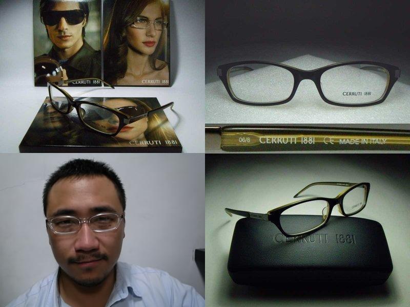 全新真品 CERRUTI 1881 光學眼鏡, 義大利製膠框, 鏡架上有 CERRUTI 1881 字樣, 男女皆適用.