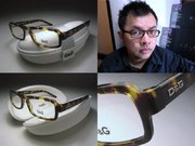 這款玳瑁色方框, 兩邊鏡架上都有金屬D&G字樣. 男女皆適用