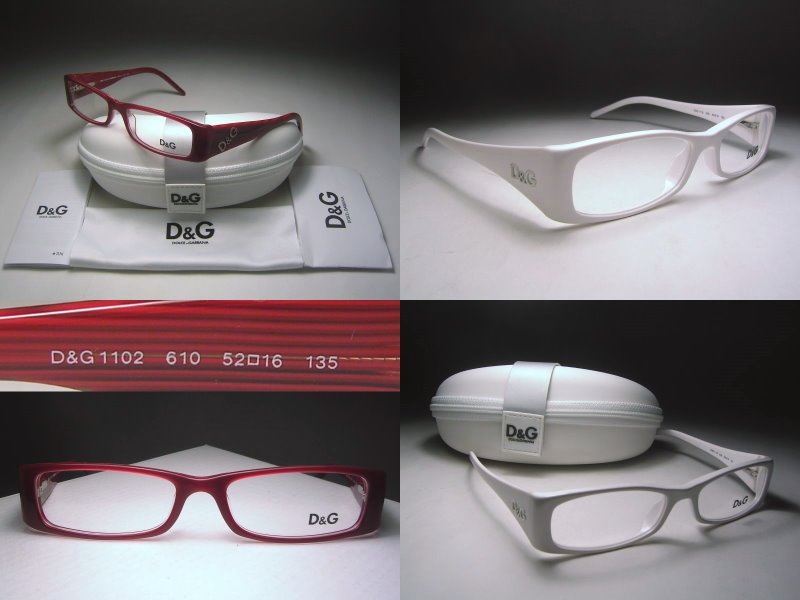 這款白色/棗紅色/黑色橢圓框, 兩邊彈簧鏡架上都有D&G字樣. 男女皆適用