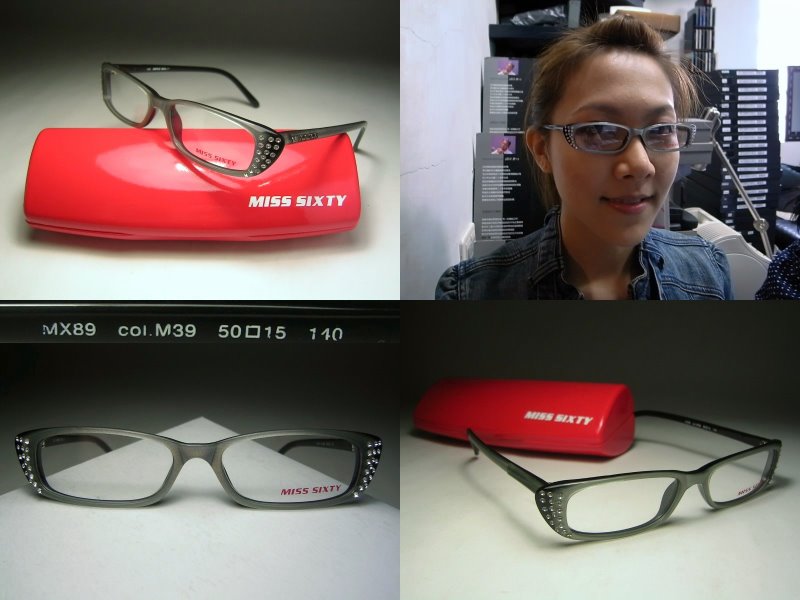 全新真品 MISS SIXTY 光學眼鏡, 漸層灰色, 水鑽膠框, 鏡架上有 MISS 60 字型 Logo, 金屬質感.