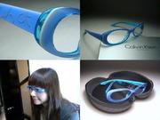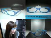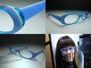 全新真品 CK calvin klein 光學眼鏡, 藍色膠框空框, 鏡架兩側有 CK Logo 字樣.