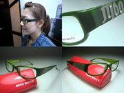 全新真品 MISS SIXTY 光學眼鏡, 綠色層次水鑽膠框, 鏡架有金屬 M 60 字樣, 上有水鑽綴飾.