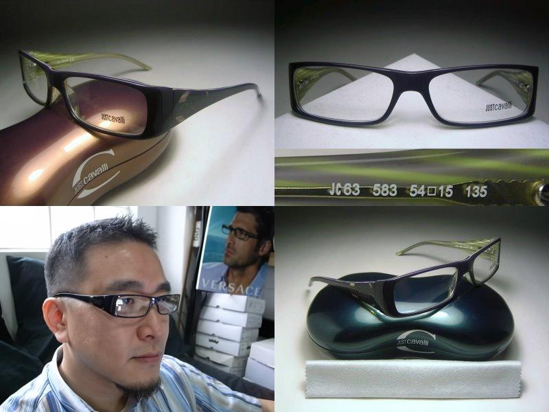 JUST Cavalli 光學眼鏡, Roberto Cavalli 品牌, 深藍色膠框, 兩邊鏡架上有 JUST Cavalli 的字樣.