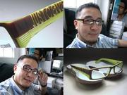眼鏡有外紅內白紋, 外咖啡內草綠紋 和 外黑內白紋三種顏色, 購買時請告知要哪一種顏色, 謝謝.