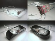 全新真品 Salvatore Ferragamo 費洛加蒙 光學眼鏡, 義大利製透明水鑽彈簧膠框, 鏡架上有 Salvatore Ferragamo 字樣.