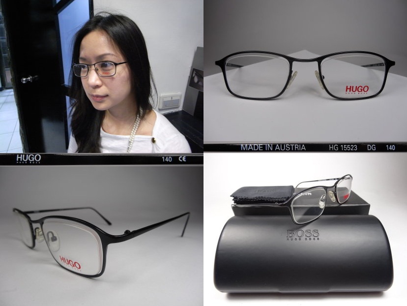 全新真品 HUGO BOSS 光學眼鏡, 奧地利製 made in Austria 鏡片鏤空黑色金屬框, HG 15523, 兩邊鏡腳都有鏤刻 HUGO 字樣, 優雅迷人.