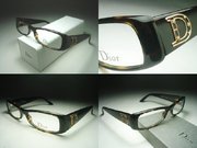 全新真品 Dior 光學眼鏡, 太樺公司貨, 義大利製玳瑁色彈簧膠框, 鏡架兩側都有大 D 字樣金屬logo, logo上面綴飾著小朵山茶花, 精緻特別.