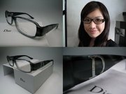 全新真品 Dior 光學眼鏡, 義大利製灰黑色彈簧膠框, 鏡架兩側都有大 D 的LOGO及 Dior 字樣 .