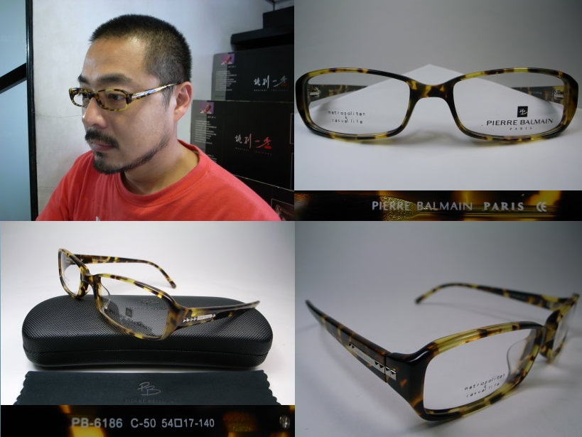 全新真品 PIERRE BALMAIN 光學眼鏡, 玳瑁色膠框方框, 兩邊鏡架金屬條上都有PIERRE BALMAIN 字樣, 男女皆適用.