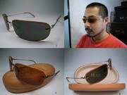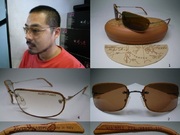 有別於一般太陽眼鏡, 框面是以皮革包框, 鏡腳也是皮革, 皮框皮腳非常有特色.