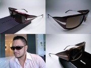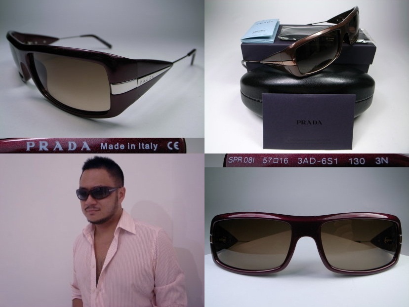 全新真品 PRADA 太陽眼鏡, SPR 081, 義大利製 膠框大框, 兩側貫穿鏡框和鏡架的金屬條上有 PRADA 的 字樣, 右上方鏡片有原廠製造的流水序號, 歡迎拿去鑑定.
