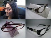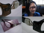 全新真品 ROYAL QUEEN 光學眼鏡, 日本製膠框, 玫瑰花款, 超越香奈兒山茶花, 鏡架轉軸處有貝殼雕刻的玫瑰花設計, 水鑽相襯.