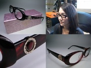 全新真品 ROYAL QUEEN 光學眼鏡, 日本製膠框, 水鑽皇冠款, 兩邊鏡架上的皇冠可以旋轉成另一邊寶石, 所以一副眼鏡可以隨意呈現兩種面貌.