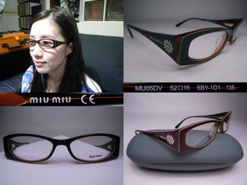 全新真品 miu miu 光學眼鏡, 小雅公司貨 MU05DV 膠框, 矢車菊彈簧鏡架, 鏡架兩側都有金屬miu miu 字樣.