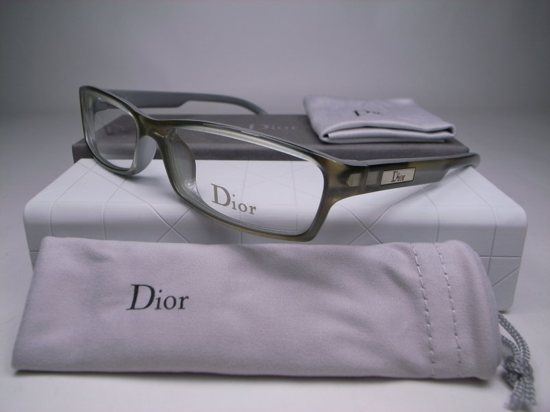 全新真品 Dior 光學眼鏡, 義大利製 銀灰色膠框K金色腳, 鏡架兩側都有金屬Dior 的字樣.