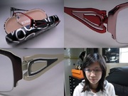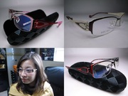 眼鏡有玫瑰金色框/鮮紅色腳, 鮮紅色框/黑色腳, 和咖啡色框/乳色腳三種顏色, 購買時請告知您要的顏色.