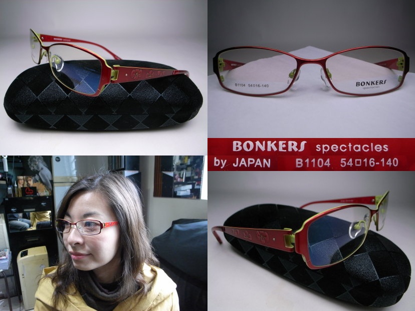 全新真品 Bonkers 光學眼鏡,表層亮紅色/底層蘋果綠色, 日本山茶花造型框, 亮麗有型, 特價回饋想要從宅女轉型為型女的網友.
