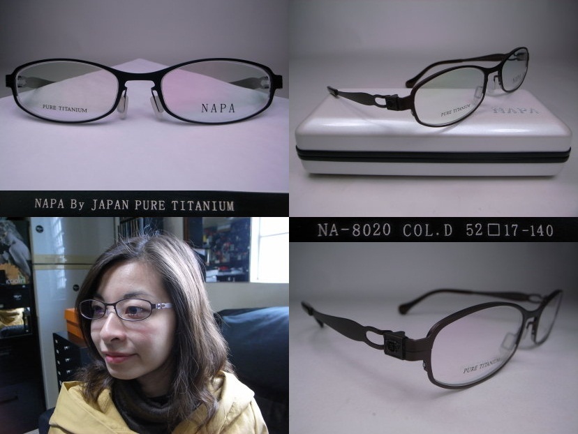 全新真品 NAPA眼鏡, 日本製, 採用真空離子電鍍的 純鈦金屬眼鏡, 超輕超薄, 舒適好看.