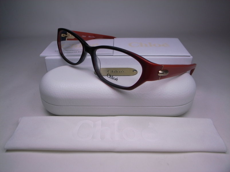 全新真品Chloe光學眼鏡, 法國製, 橘色暗紅漸層膠框, 當季新款, 鏡架兩邊都有金屬Chloe字樣, 品味出眾.