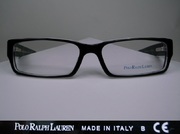 全新真品 POLO RALPH LAUREN 光學眼鏡, 小雅公司貨, 義大利製, 黑色彈簧方框, 鏡架兩旁都有POLO的馬師logo.