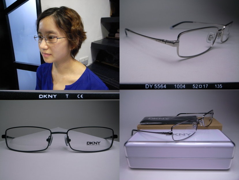 全新真品 DKNY光學眼鏡, 彈簧細金屬方框, 鏡架兩側皆有鏤刻DKNY字樣.