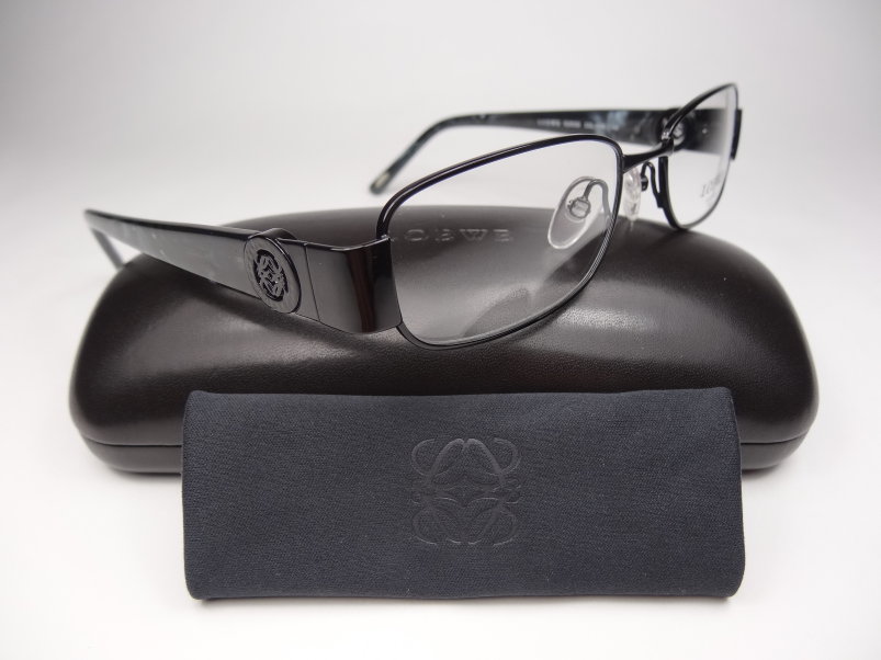 全新真品 LOEWE 光學眼鏡, 太樺公司貨, 義大利製 金屬框膠腳, 鏡框和鏡架轉軸上有 LOEWE著名的細鑽圖騰logo.
